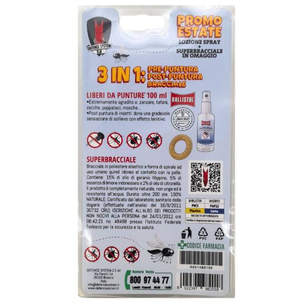 Antizanzare spray 3 in 1 BALLISTOL 98202 con braccialetto 100ml