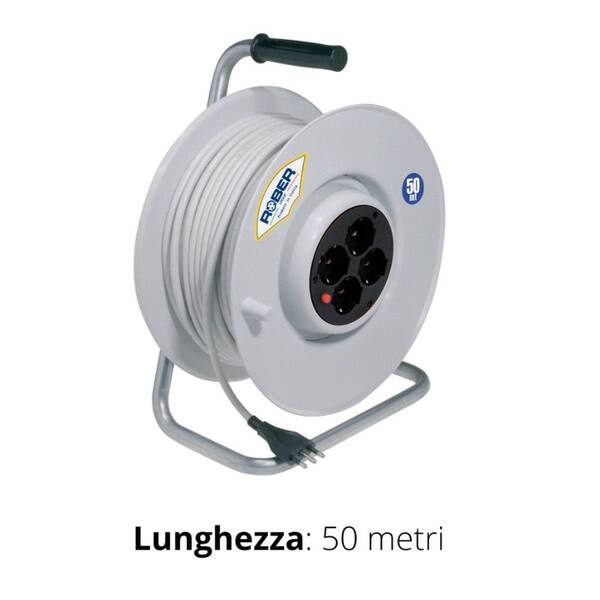 Avvolgicavo elettrico 50mt cavo 3x1,5mm FROR antifiamma 4 prese