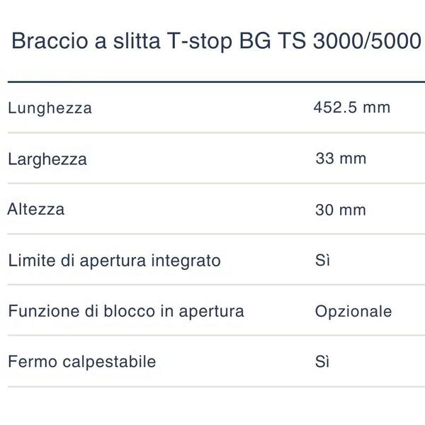 Braccio a slitta BG T-STOP per GEZE TS3000/TS5000 NERO OPACO