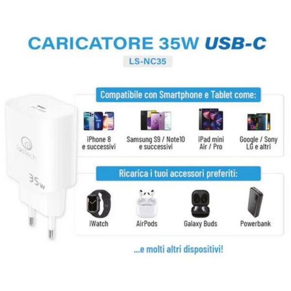 Caricatore PREMIUM Lostech ricarica rapida 35W LS-NC35 presa USB-C