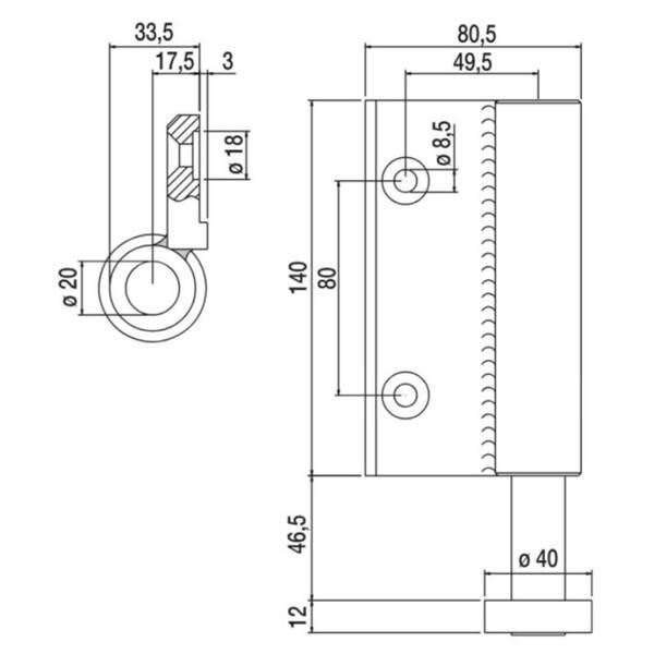 Cerniera 1 ala inferiore Rolling Center CRN3 PIANA cuscinetto ø 40mm