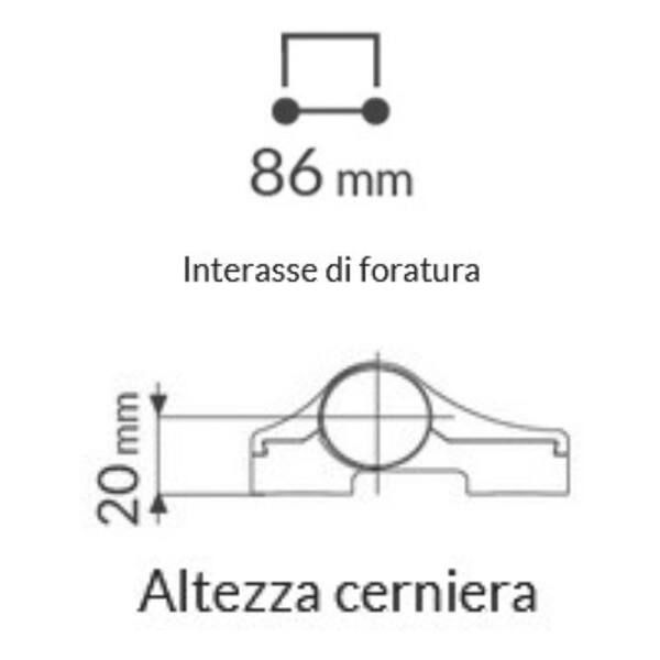 Cerniera alluminio tre ali Fapim LOIRA+ 7043VA interasse 86mm argento