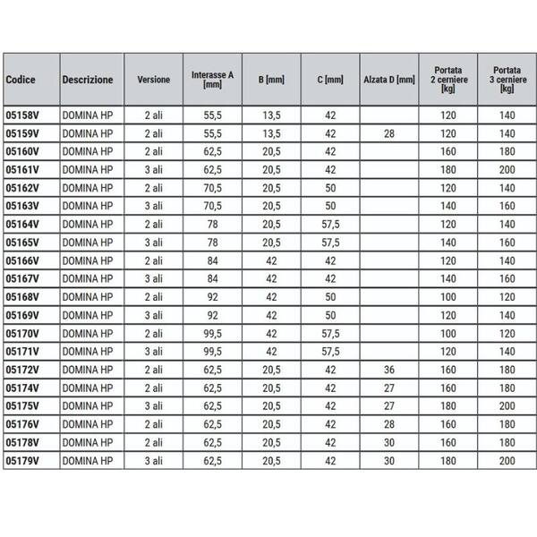 Cerniere 3 ali GIESSE 5167V applicazione frontale DOMINA HP Ral9005