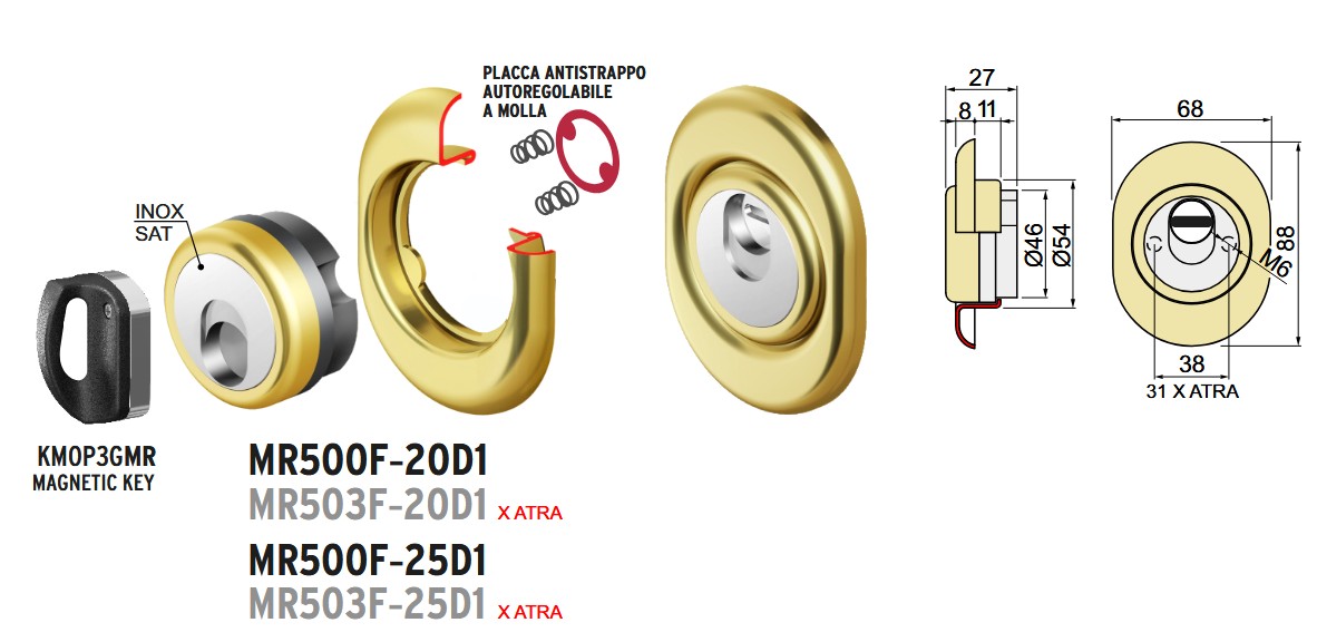 Defender monolito magnetico inox Disec MR500F cromo satinato 25mm