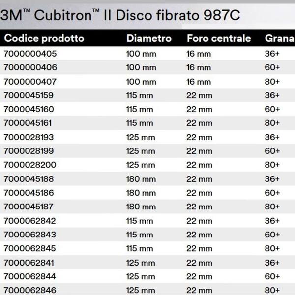Disco fibrato 3M 987C Cubitron II per inox ø 115x22mm Grana 36