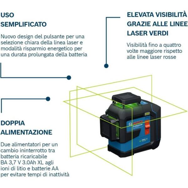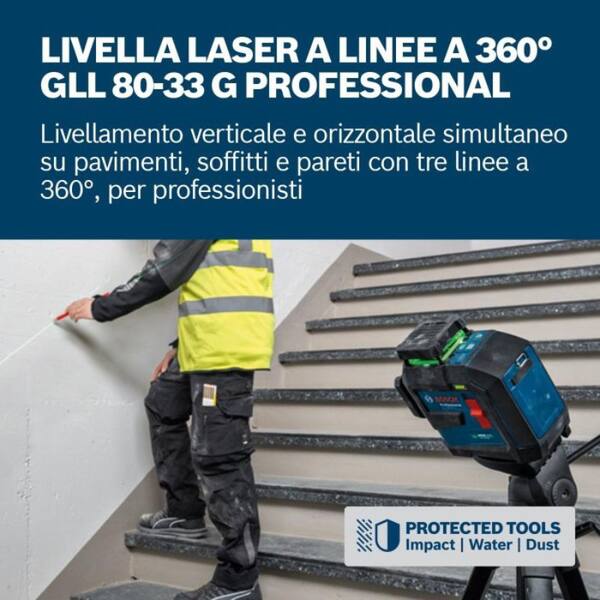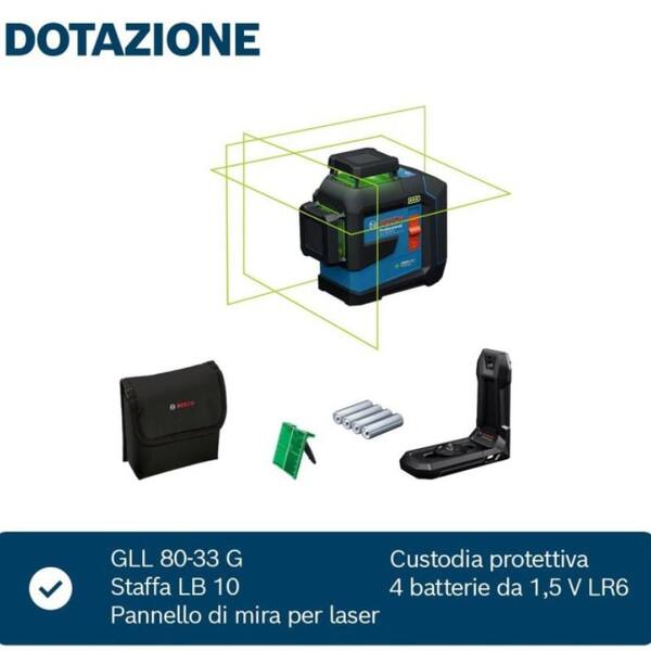 Livella laser 3 linee verdi Bosch GLL 80-33 G 0601065500 con batterie