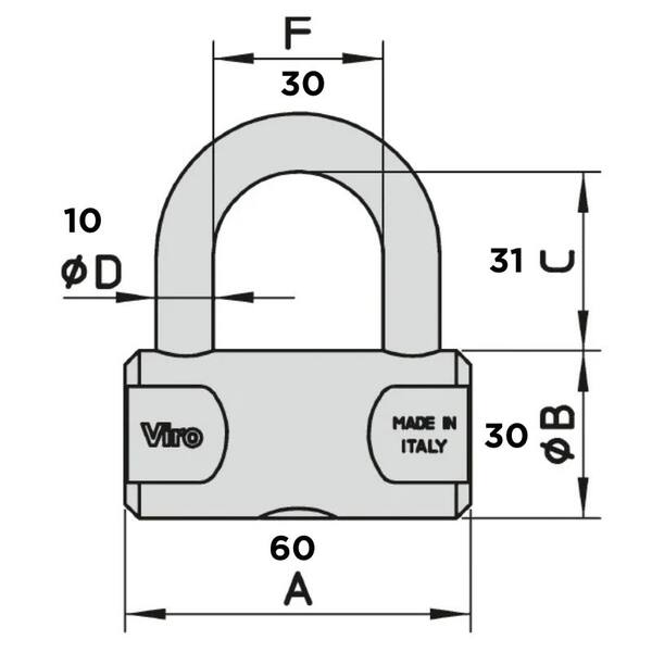 Lucchetto cilindrico in ottone VIRO 103 - 60mm