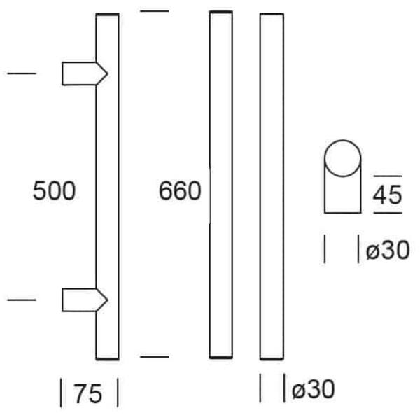 Maniglione diritto Reguitti FRANKFURT 30 inox Ral9005 I=500mm ø 30mm