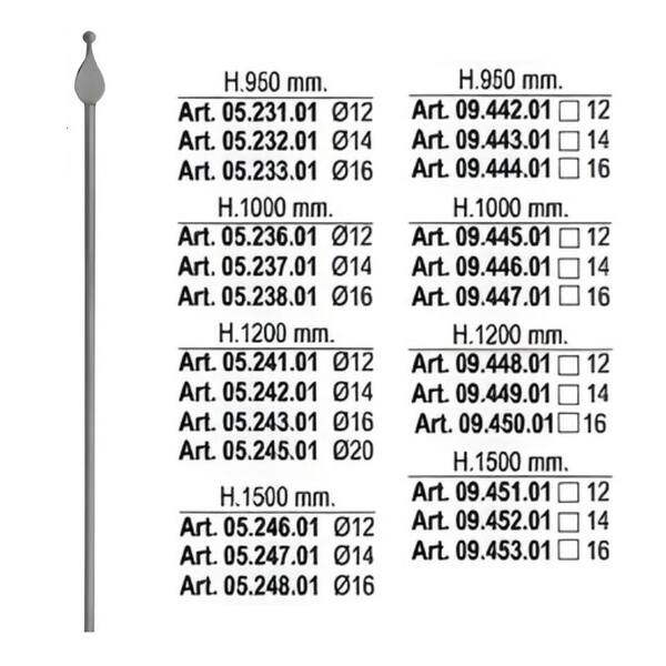 Paletto ferro battuto EURO-FER 05.241.01 Tondo 12mm H.1200mm