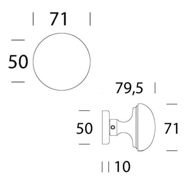 Pomolo fisso Reguitti COSMO con rosetta ø 75mm lucido verniciato