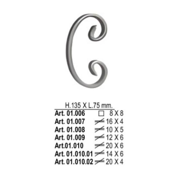 Riccio semplice ferro battuto EURO-FER 01.009 profilo Piatto 12x6mm