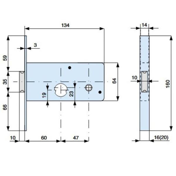 Serratura 2 mandate MG 805602 con scrocco senza cilindro