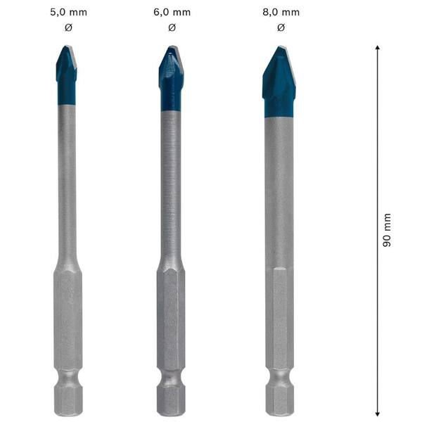 Set 3 punte Bosch Expert HEX-9 per ceramica ø 5-6-8mm