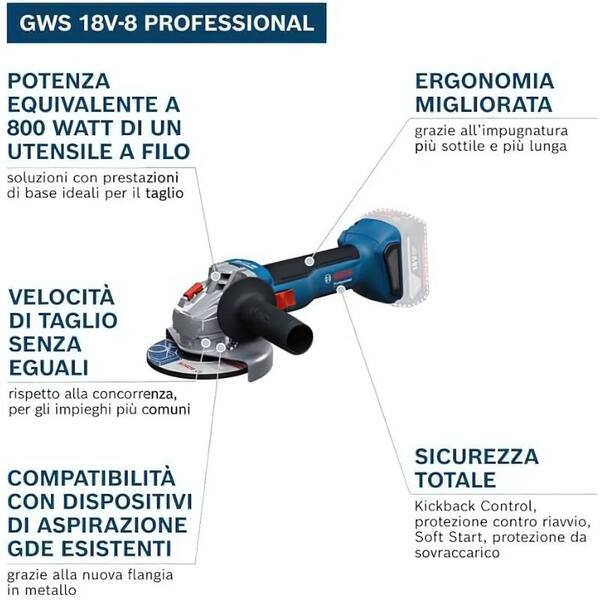 Smerigliatrice angolare a batteria Bosch GWS 18V-8