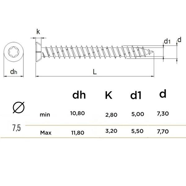 Vite testa svasata piana Heco FIXTEL T-DRIVE B11 ø 7,5x132mm T30